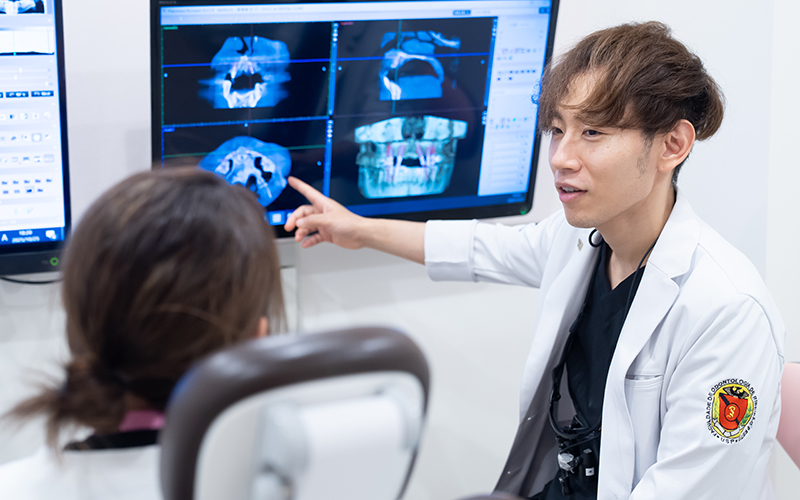 治療内容はわかりにくいものが多いですが、口の中を大きく拡大した画像をご覧いただき、できるだけわかりやすく説明させていただきます。お口のカルテをお渡しします。