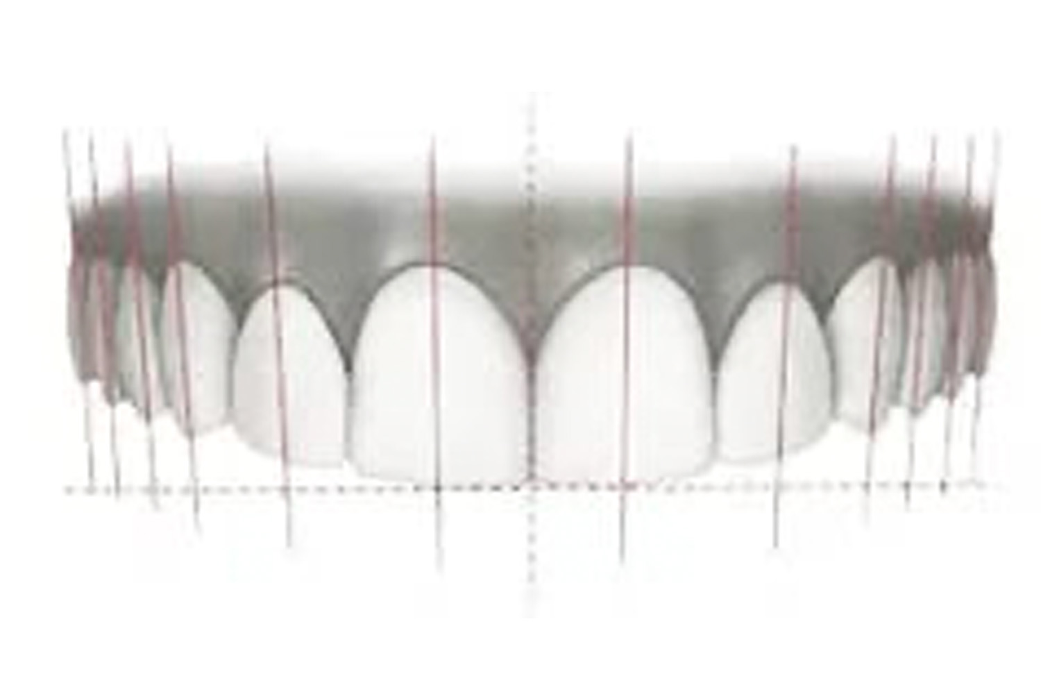 「ゴールデンプロポーション」といわれる前歯の並びに存在する黄金比があり、具体的には「中切歯(1.618)」「側切歯(1)」「犬歯(0.618)」の配列です。この配列にすることで、前歯の印象が非常に美しくなります。